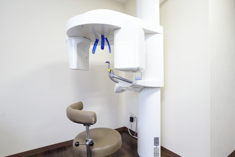 歯科に特化していて、医科用のCTと比べて撮影時の被曝量も大幅に抑えることができます。当院では、審査診断の際にも必要に応じて歯科用CTを使用しています。スキャンしたデータを患者様にも一緒に確認していただくことで、治療への理解を高めていただいています。